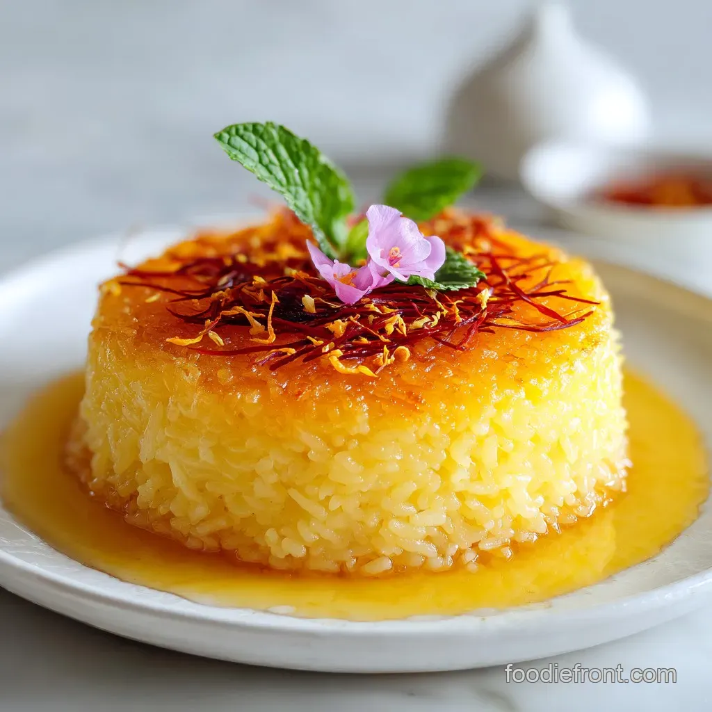 - Flavor/Texture Hook: Crunchy, buttery rice crust paired with saffron scented, tender chicken.